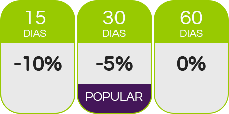 Escolha de quanto em quanto tempo quer receber o seu pack.