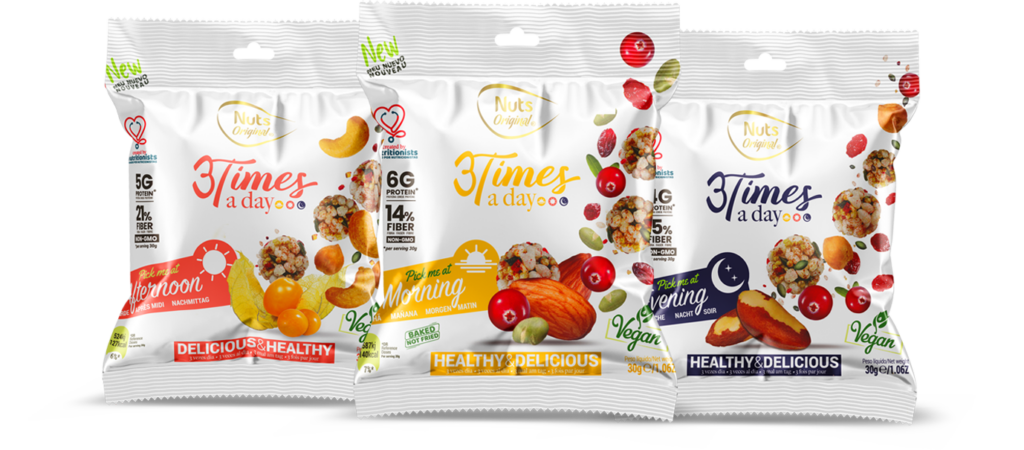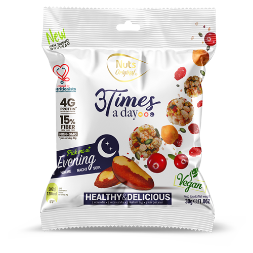 A Nuts desenvolveu um novo conceito e aliou-se a uma equipa de nutricionistas, para revolucionar mais uma vez o mundo dos snacks com a "3 times a day".